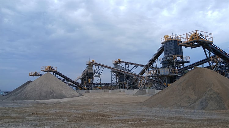 - 2号生产线-生产七种不同类型的骨料产品,目前已全面投产,体现出在统一的设备框架内根据具体场地进行的定制化设计。